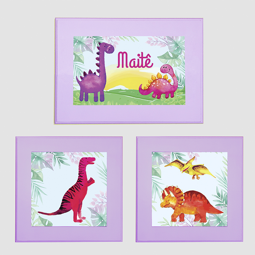 Kit com três lindos quadros infantis para decoração tema Dinossauros!