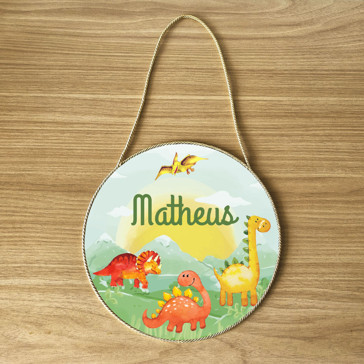Uma unidade de placa para enfeite da Porta da Maternidade de tema Dinossauro.
