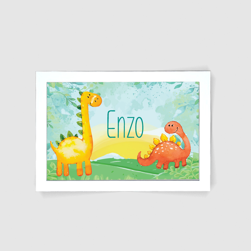 Quadro decorativo para quarto infantil com tema de dinossauro.